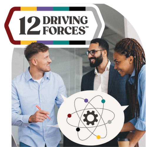 The 12 Driving Forces® assessment explores motivation and engagement through six factors, measuring why a person does what they do.